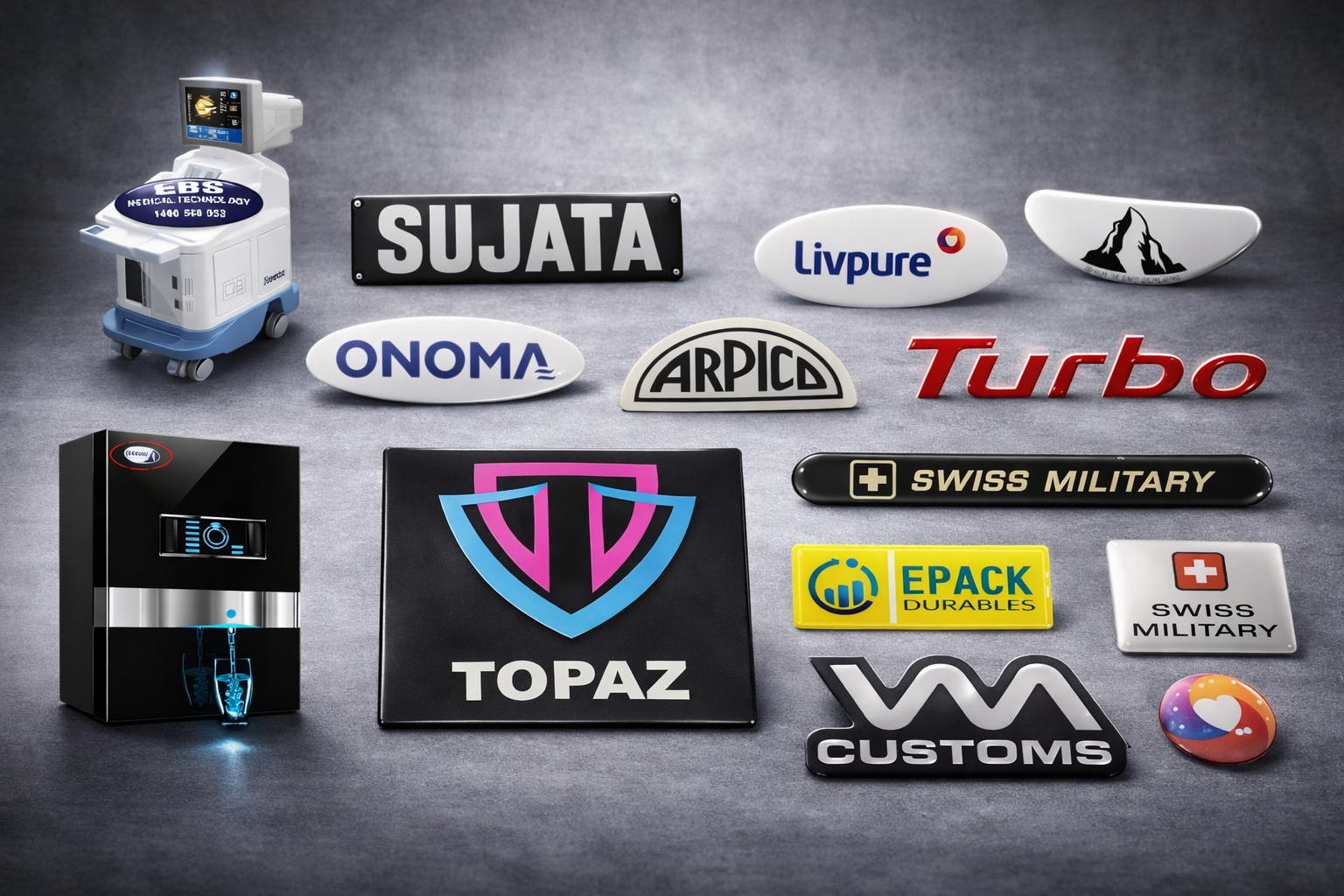 3D dome logos with glossy finish and strong visual appeal.